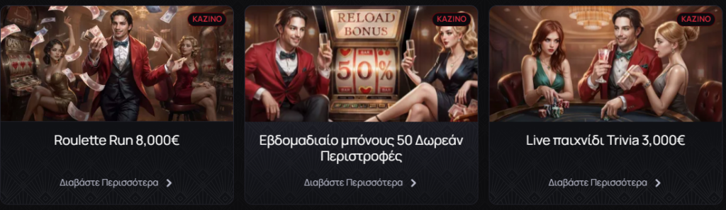 The casino provides welcome bonuses, reload bonuses, free spins and special promotional offers such as tournaments and VIP loyalty programs.