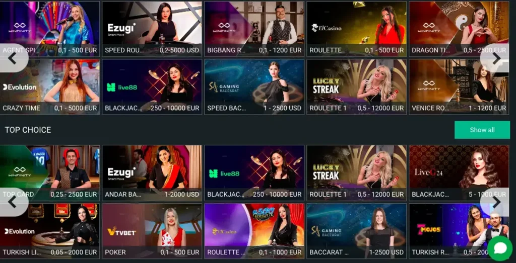 - Ζωντανό Καζίνο (Live Casino) – Live Blackjack, Live Roulette, Live Baccarat και τηλεπαιχνίδια (π.χ. Dream Catcher, Crazy Time).